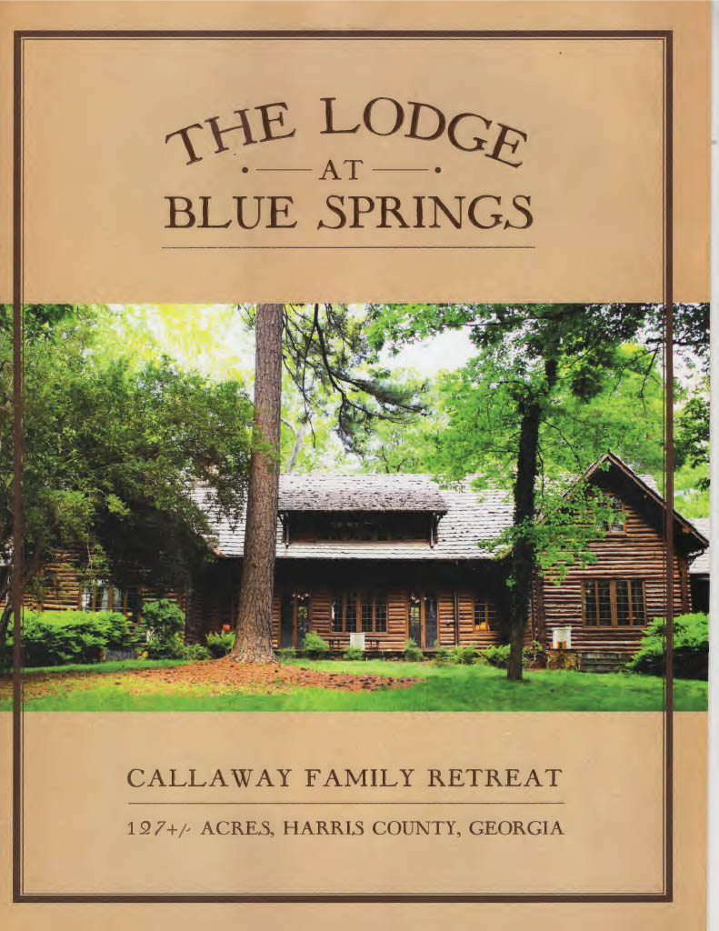 The Cason and Virginia Callaway home has 57 acres with a rustic style main home, 8 outbuildings, a lake and lily ponds. The Atlanta architectural Firm of Ivey and Crook designed the main house in 1931 as a hunting lodger Cason’s brother Fuller E. Callaway. It was designed in the manner of the Adirondack camps of the late 19th and early 20th century . The one and a half story house is clad in saddle-etched pine logs that were harvested on the land. The roof is covered with pine shingles and supported by pine-log brackets and there is no architectural ornament apart from the unseen logs.